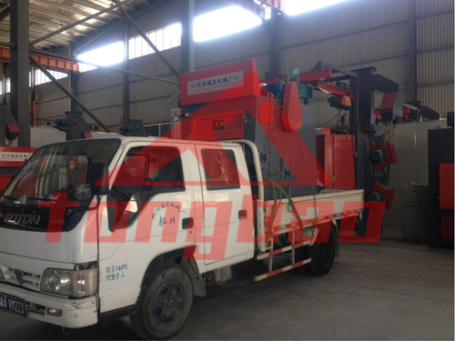 2012年10月18日 我公司為安徽黃山某軸承公司制造的履帶式拋丸機(jī)如期完工,準(zhǔn)備裝載運(yùn)往安徽黃山,預(yù)計(jì)于今天傍晚抵達(dá)該公司。我公司生產(chǎn)的履帶式拋丸機(jī)采用懸臂離心式拋丸器,使用壽命長,極其適用于軸承等工件的拋丸處理。